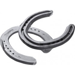 10 mm LIBERO CONCAVE is a drop forged horseshoe. FRONTS are TOE CLIPPED; HINDS have side clips. Enhanced traction with a concave profile, featuring 5 nail hole pattern on each branch for versatile nailing options. Additional width and thickness without added weight make it suitable for multiple disciplines with its versatility.