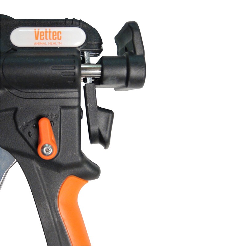 VETTEC DUAL SPEED APPLIATOR 210cc dispenser has a 2-speed feature, with a setting similar to the normal dispenser, as well as a second setting, which dispenses at a much faster rate, putting out more material with less pumps.