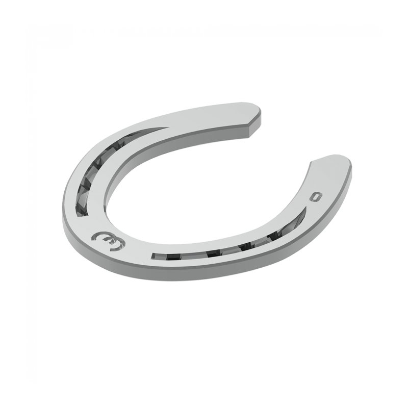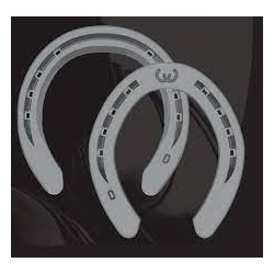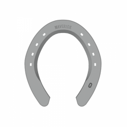 The Maverick is designed specifically for the shape of the American Quarter Horse foot. Key features include proper toe and heel check, deep fullering and correct nail placement. It also has built-in sole relief. The Maverick's medial and lateral quarters are located just behind the widest portion of the shoe. The shoe is punched for city heads and is 8 mm thick. Fronts are rim shoes.